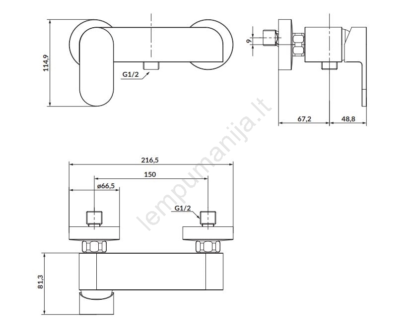• Valdymo elementas: 35 mm keraminis kasetė.