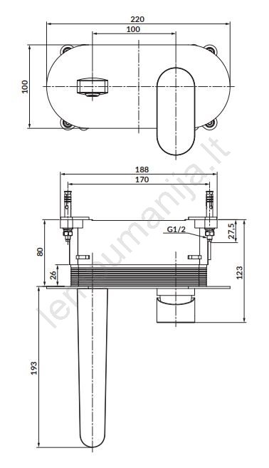 • Sieninis praustuvo maišytuvas potinkinei montavimui.