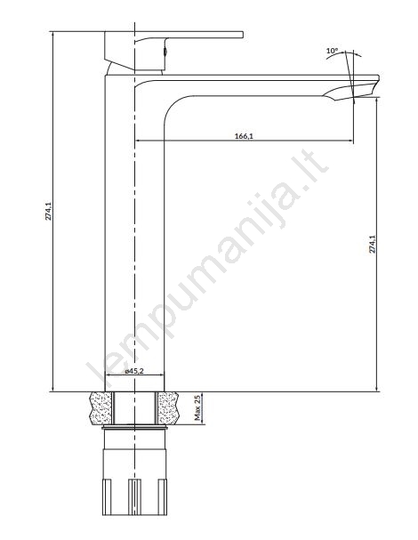 • Valdymo elementas: 35 mm keraminis kasetė.