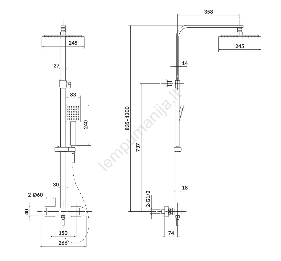 • Rinkinys komplektuojamas su 150 cm ilgio dušo žarna.