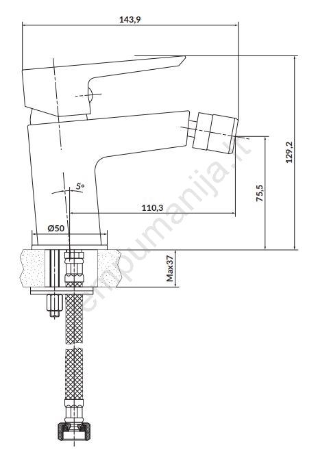 • Maišytuvas taip pat turi lanksčias Eco EPDM jungiamąsias žarnas, kurių ilgis 40 cm.