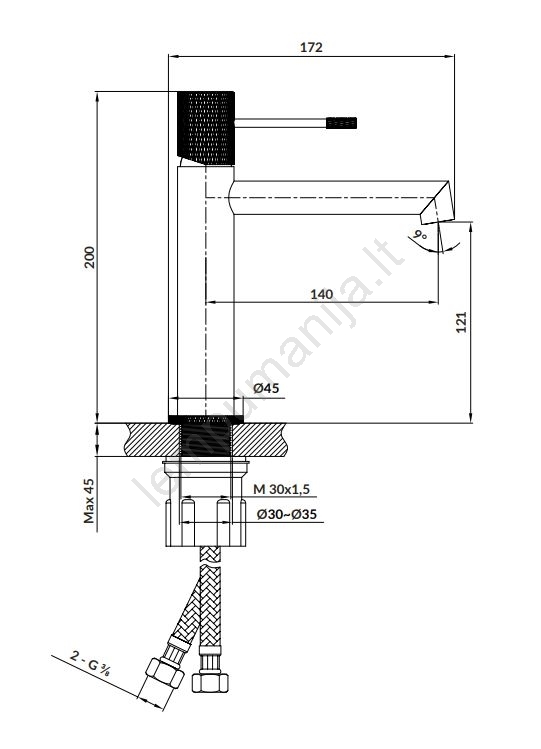 • Prijungimo žarnos, kurių ilgis 60 cm, yra komplekte.