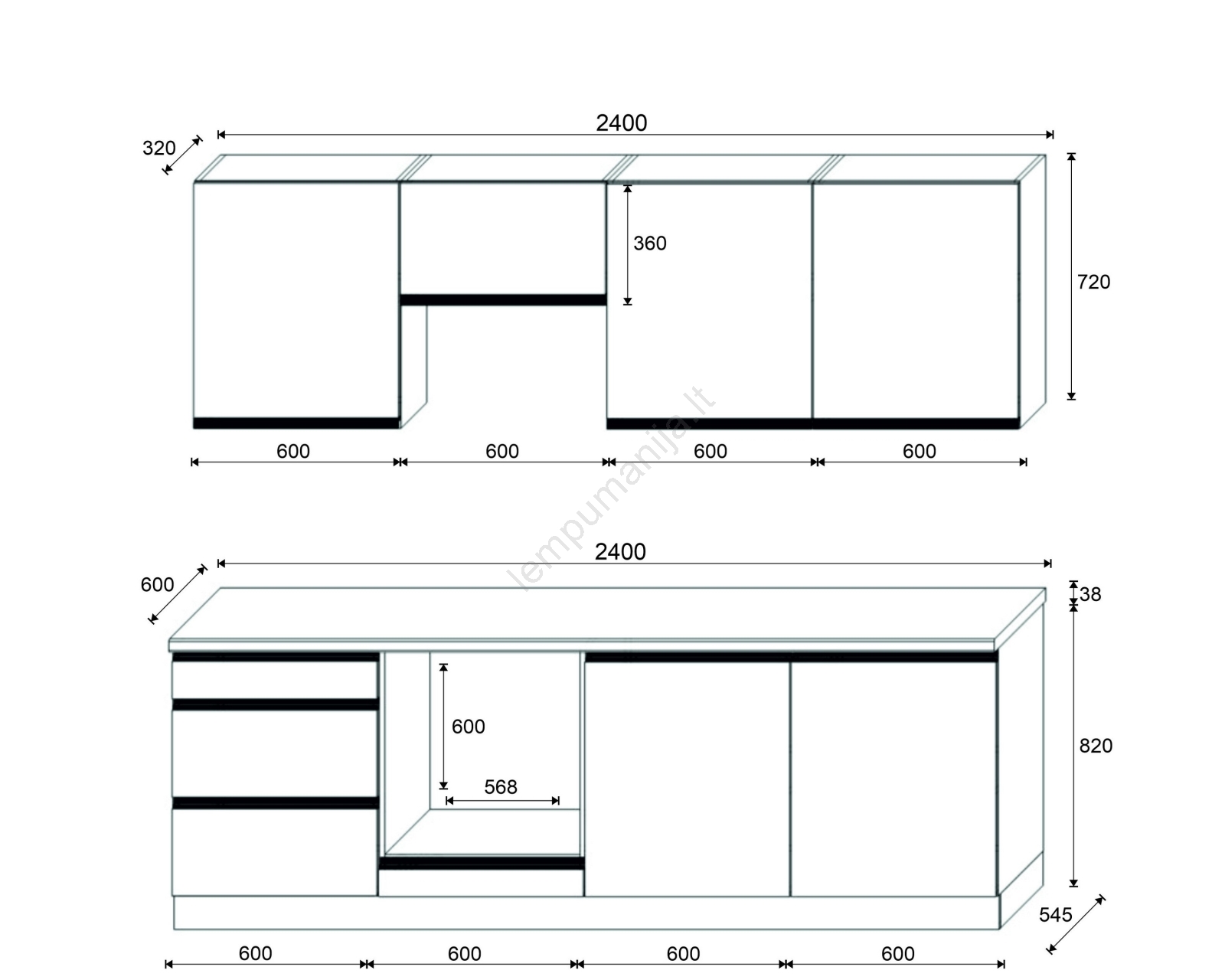 • Prie komplekto nepridedami elektros prietaisai, virtuvės kriauklė ir maišytuvas.
