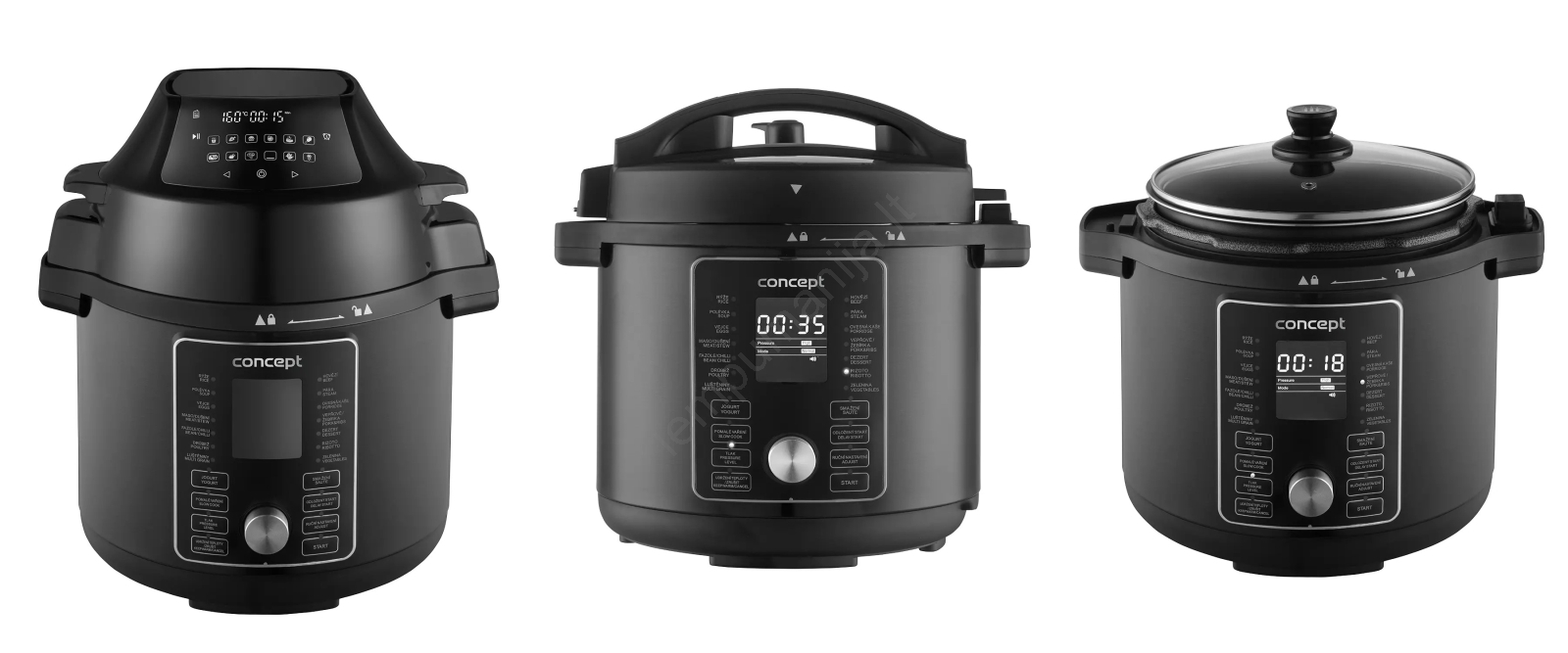 Concept CK8000 - Daugiafunkcis elektrinis slėginis puodas ir karšto oro gruzdintuvė, 5,6 l, 11 viename, 1500 W/230 V, juoda