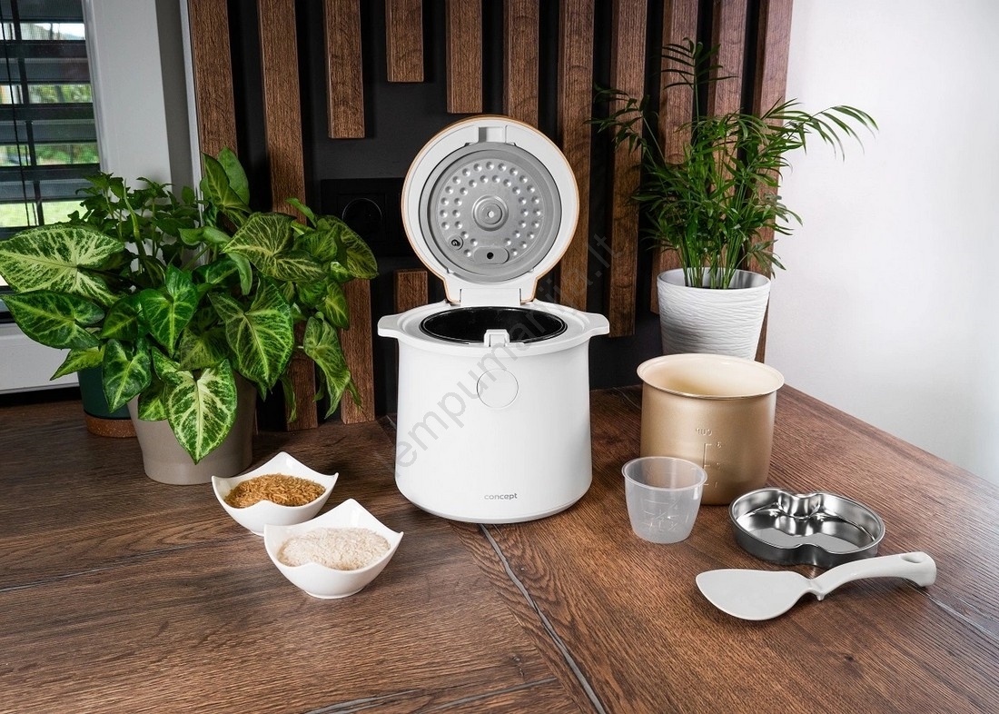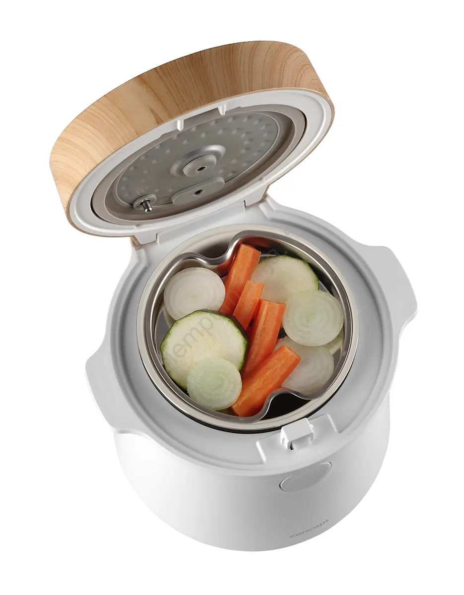 Concept RE3030 - Skaitmeninė ryžių viryklė 2 viename 380W/230V 1,5 l balta/medžio dekoras