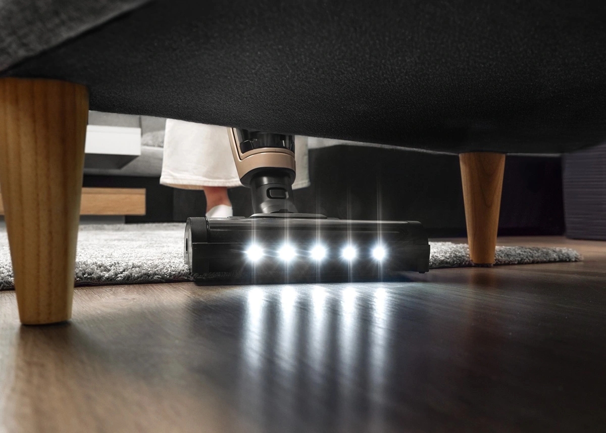 • LED žibintai ant turbinio šepečio.