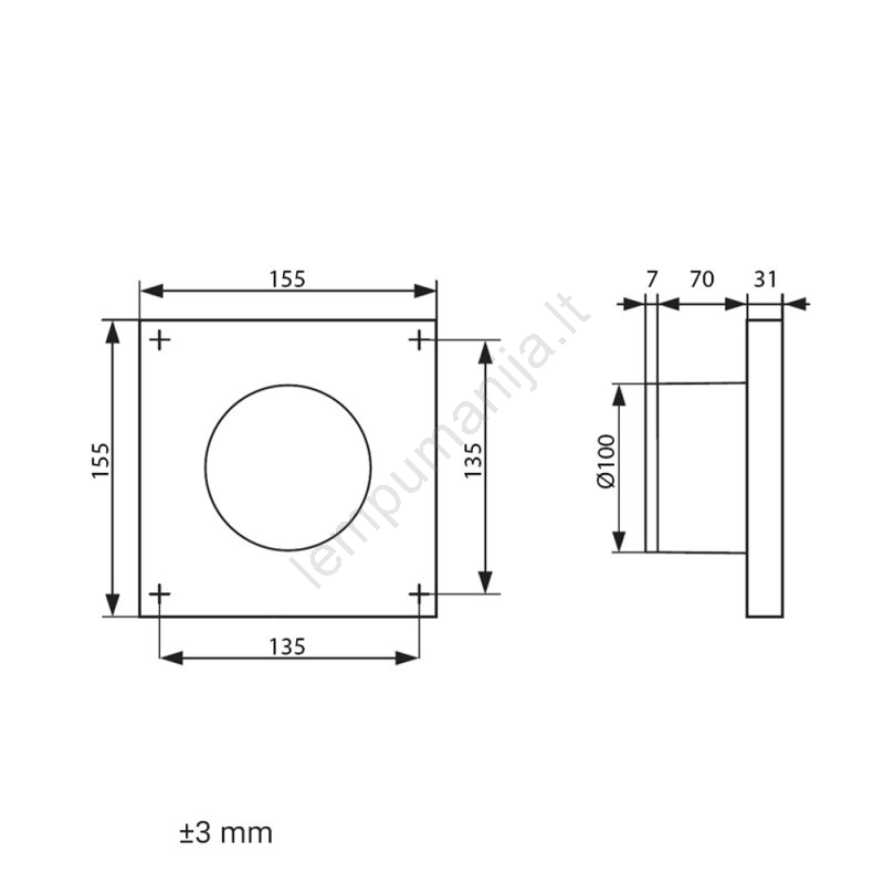• Ventiliatorius suderinamas su ortakio skersmeniu Ø100 mm.