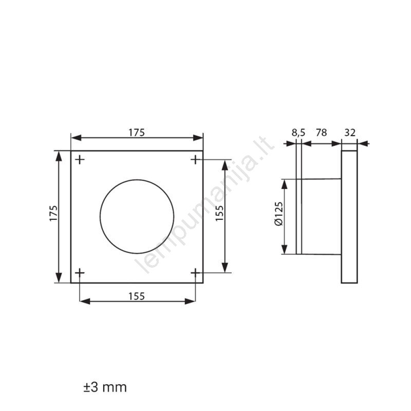 • Ventiliatorius suderinamas su 125 mm skersmens ortakiais.