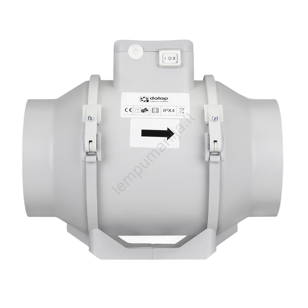 • Aukštas našumas ir žemas triukšmo lygis profesionalaus ortakinio ventiliatoriaus su integruotu greičių jungikliu.