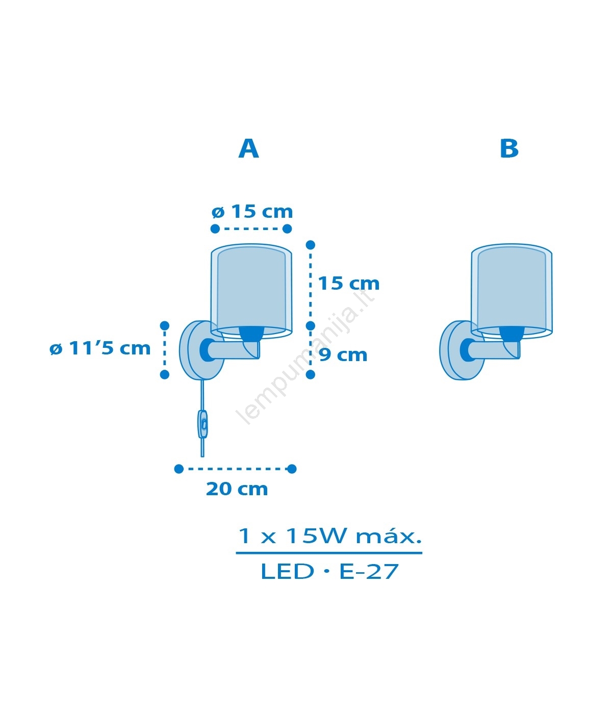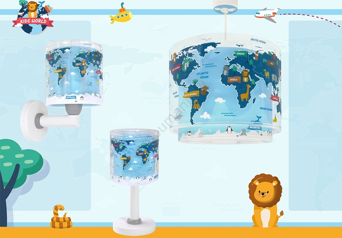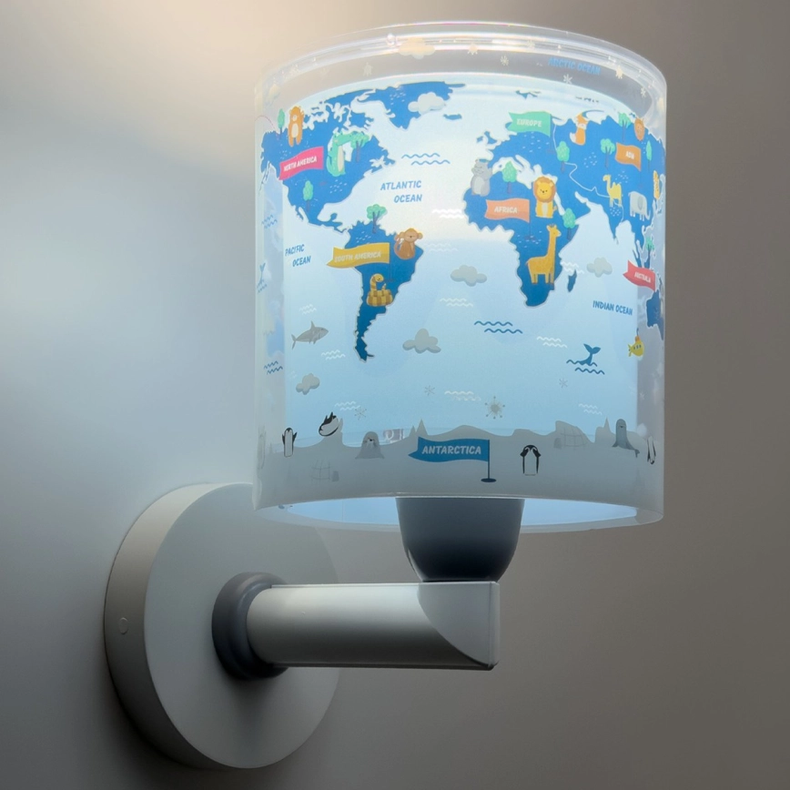 Dalber 40679 - Vaikiškas sieninis šviestuvas WORLD 1xE27/15W/230V mėlynas | Lempumanija