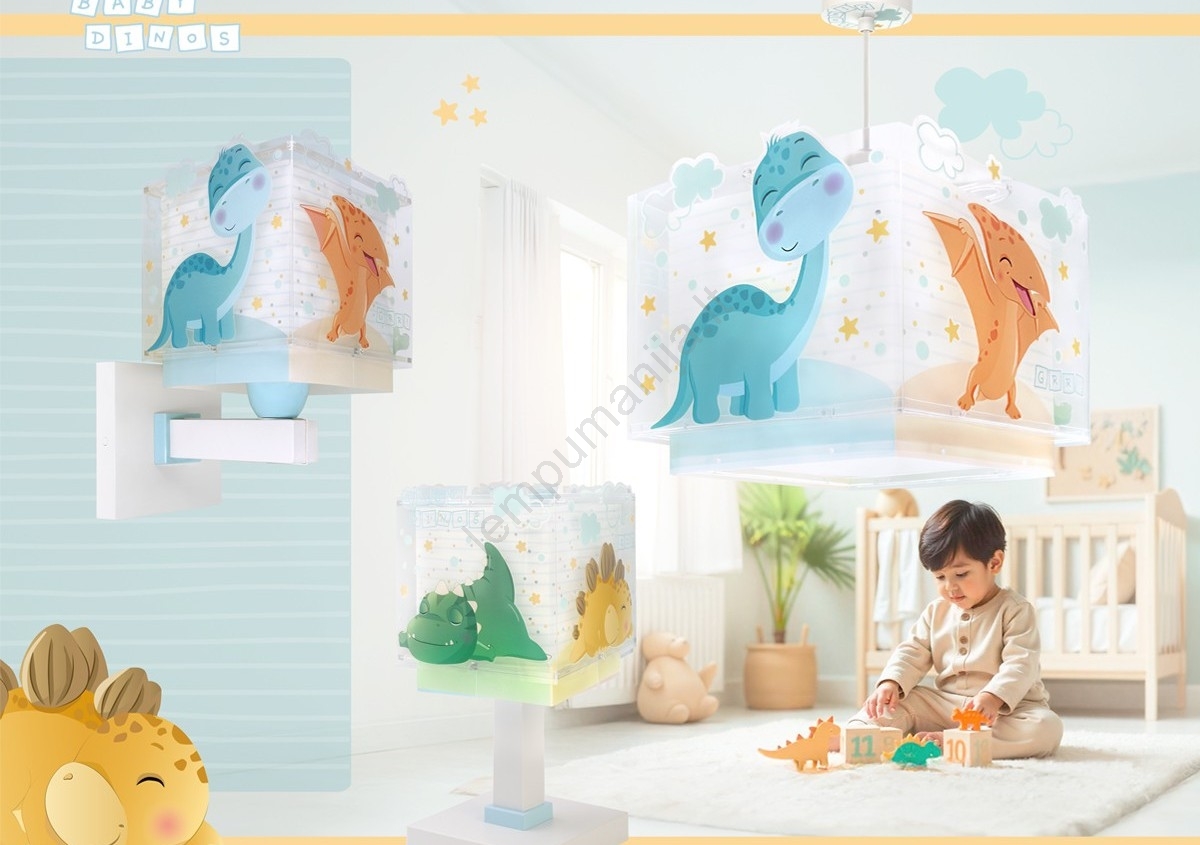 Dalber 63452 - Vaikiškas pakabinamas šviestuvas BABY DINOS 1xE27/15W/230V įvairiaspalvis | Lempumani
