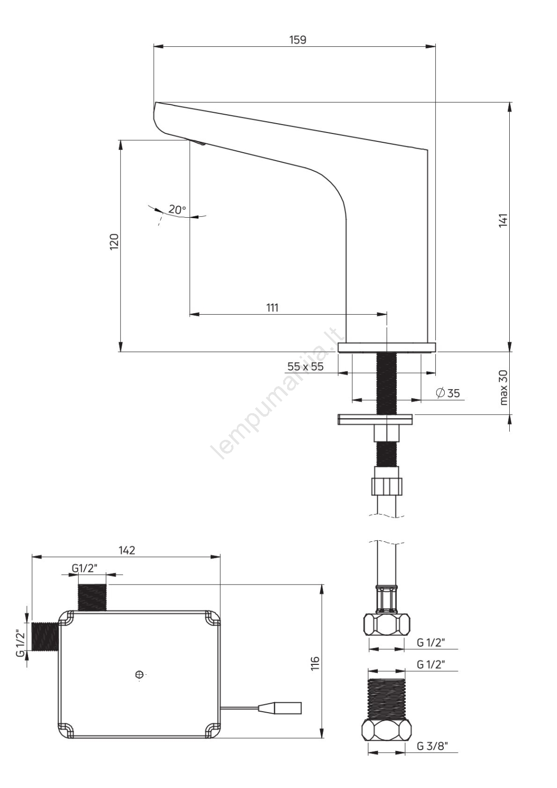 • Maišytuvo korpusas pagamintas iš aukščiausios kokybės žalvario.