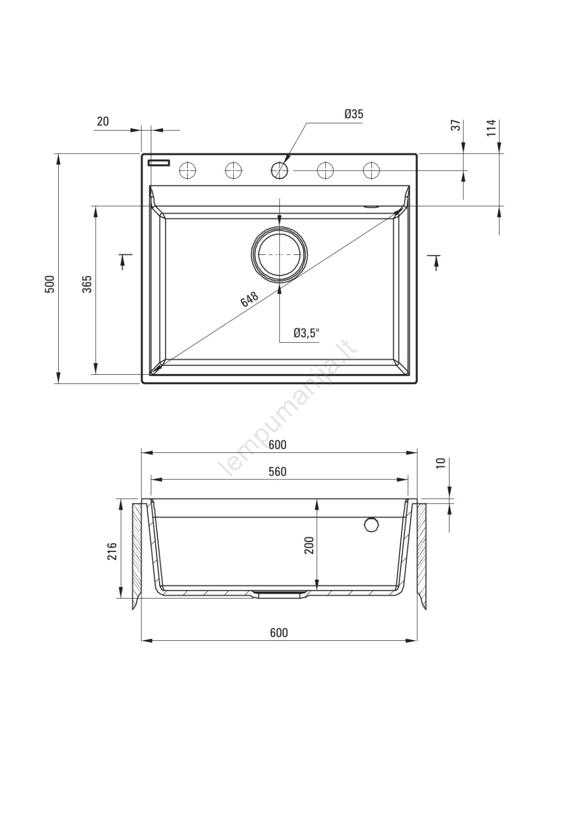 • Kriauklė montuojama į stalviršį.
