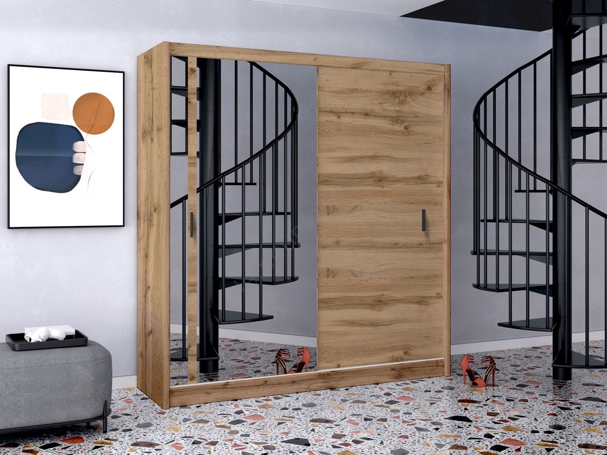 • Spinta su veidrodžiu MIRO 203x215 cm, ąžuolas craft/juoda