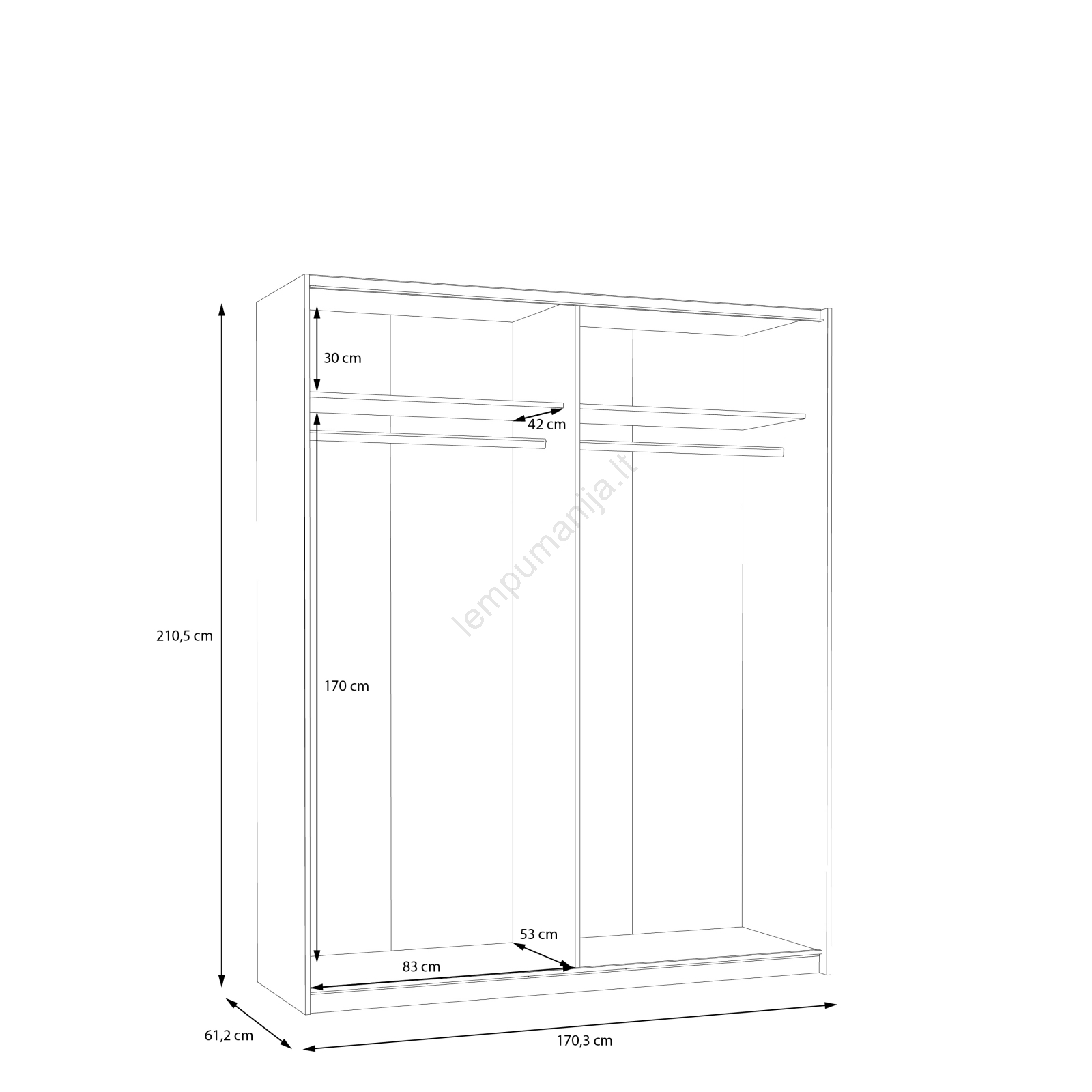 • Papildomas vidines lentynas galite įsigyti čia: 3 vnt. lentynų 82,9x42 cm.