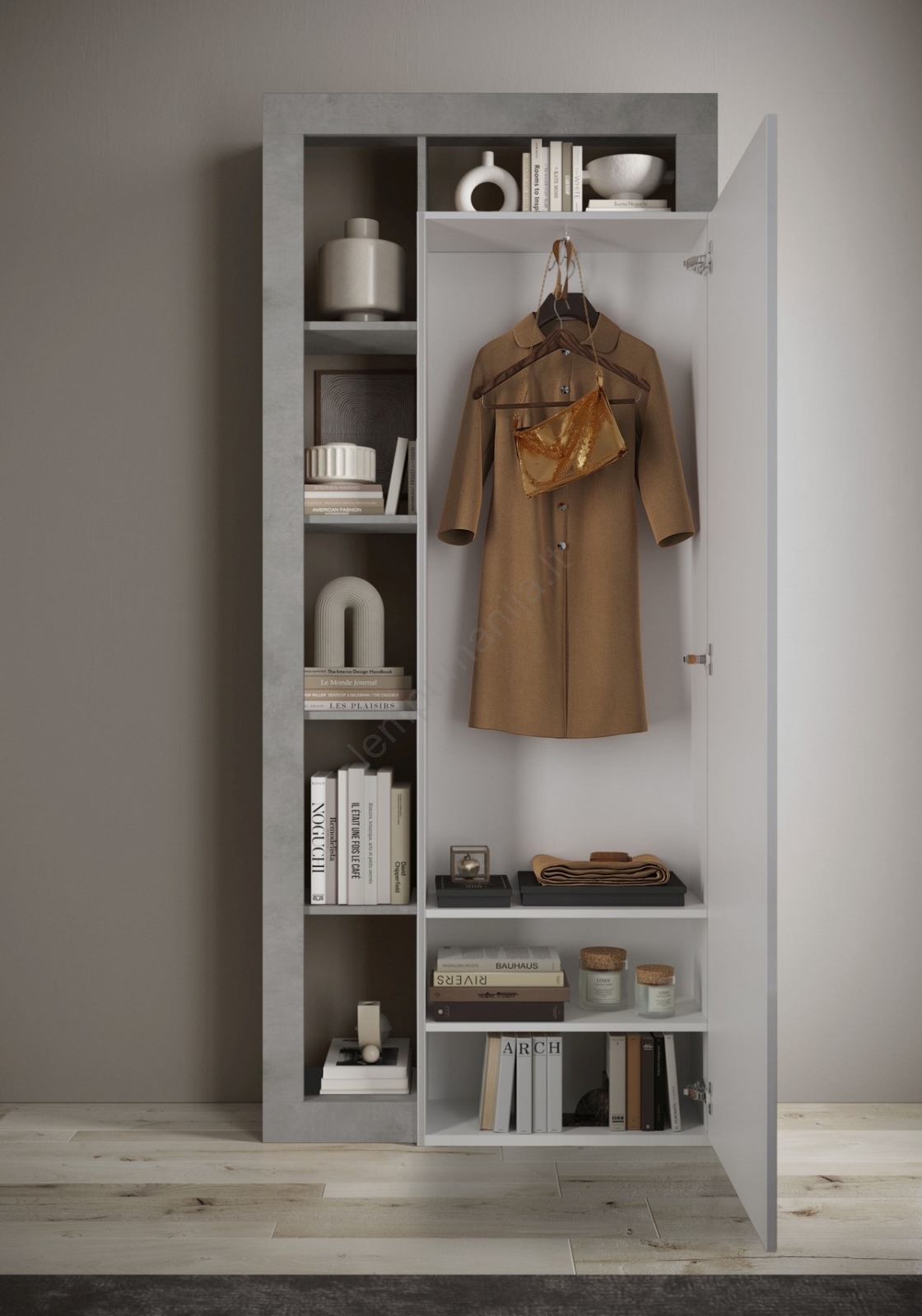 Drabužių spinta LENOR 91x209 cm, balta / pilko betono efektas | Lempumanija