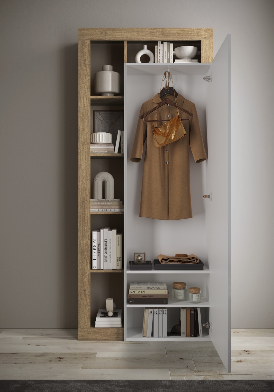 Drabužių spinta LENOR 91x209 cm balta/ruda | Lempumanija