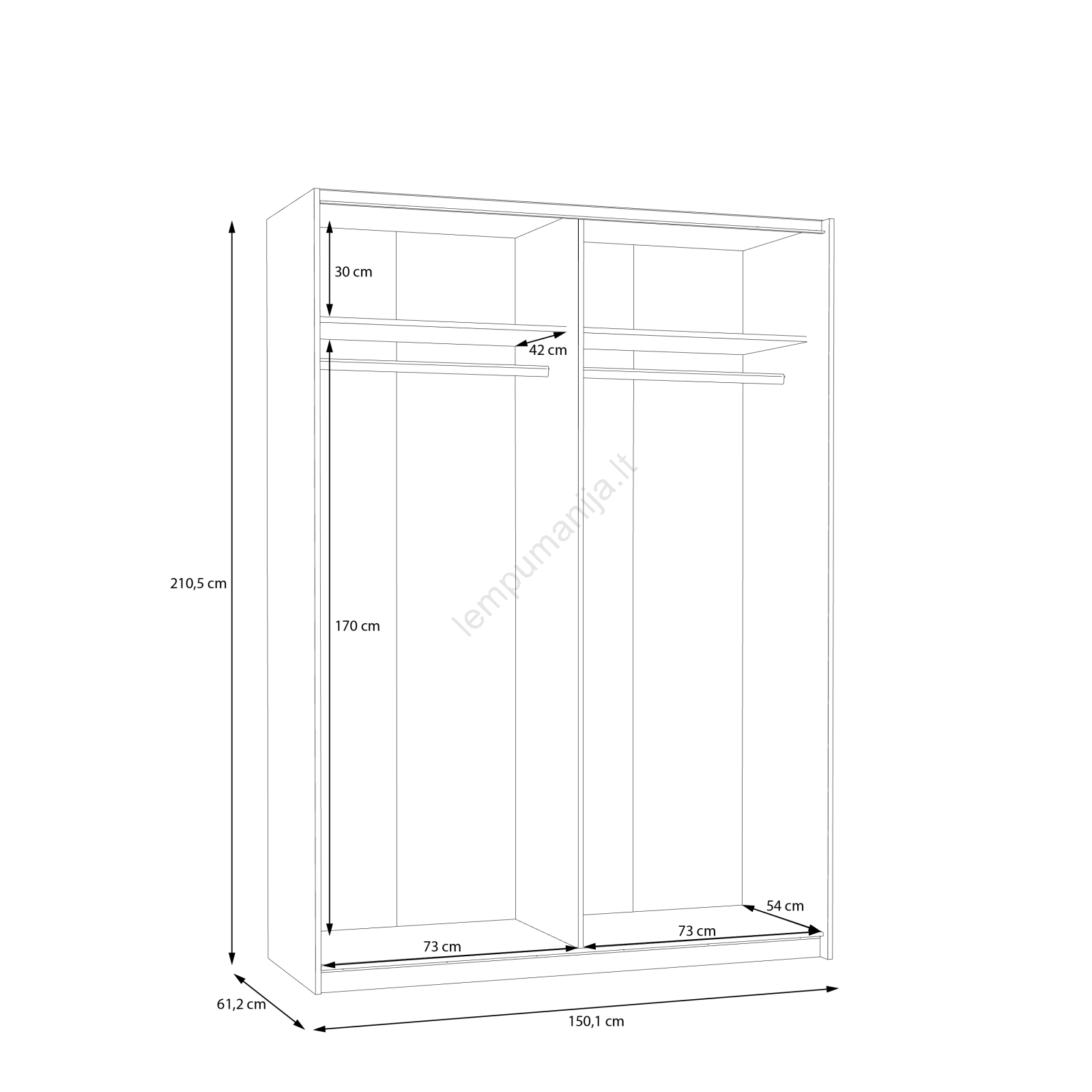 • Papildomos vidinės lentynos yra prieinamos įsigyti čia:  3 vnt. lentynų 72,7x42 cm.