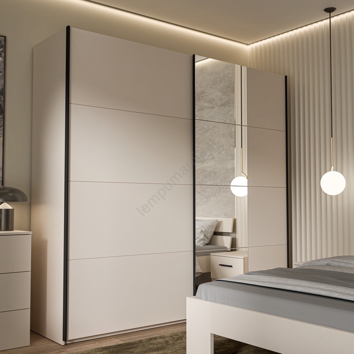 Spinta su veidrodžiu ODEN 220x210 cm smėlinė | Lempumanija