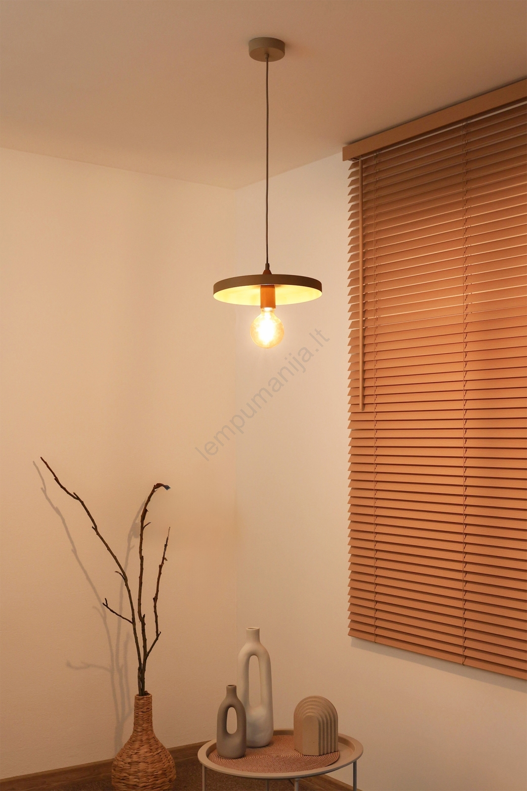 Duolla - Pakabinamas šviestuvas su laidu IRONLINE 1xE27/15W/230V Ø 30 cm smėlinė/varinė | Lempumanij