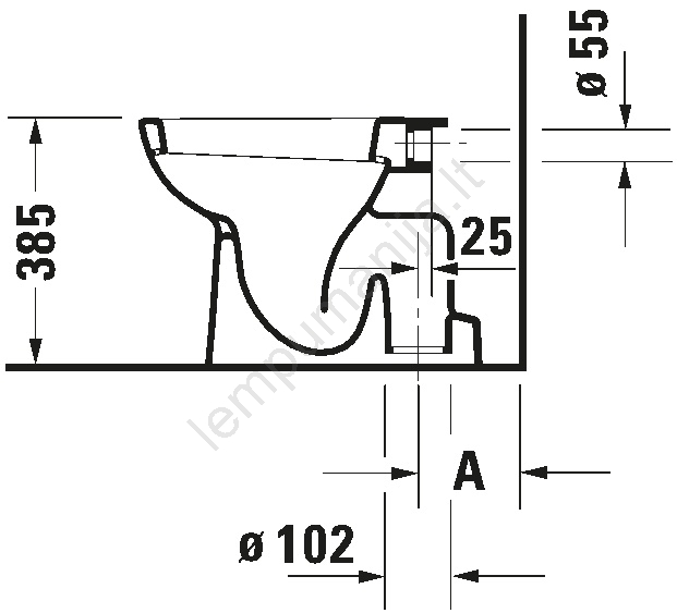 • Vertikalus nuotekų išvedimas su išsišakojimu gale, apačioje.