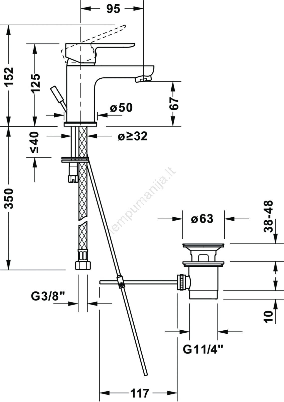 • Svirtinis praustuvo maišytuvas skirtas montuoti ant praustuvo.