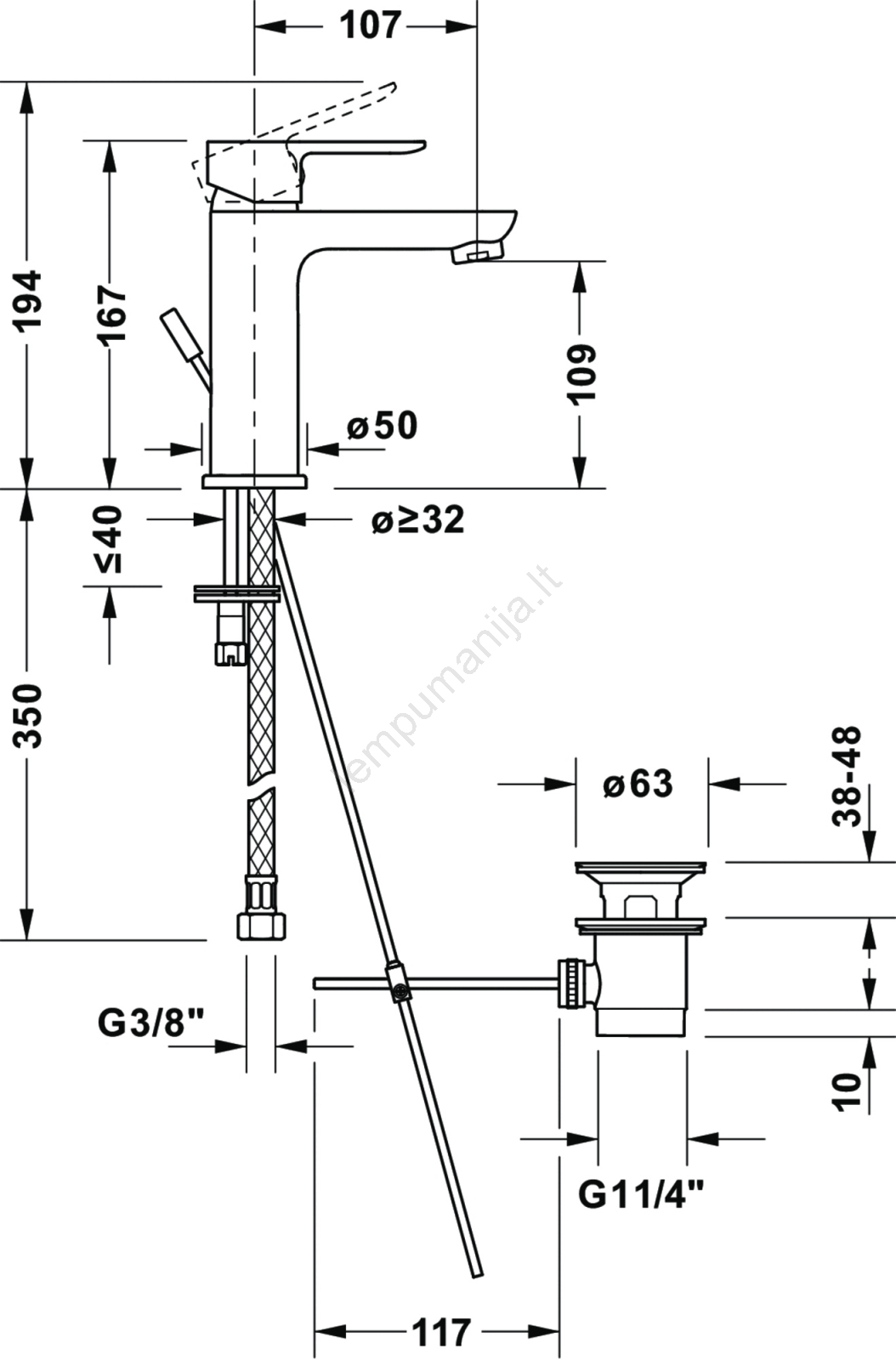 • Vienos svirties maišytuvas skirtas montuoti ant praustuvo.