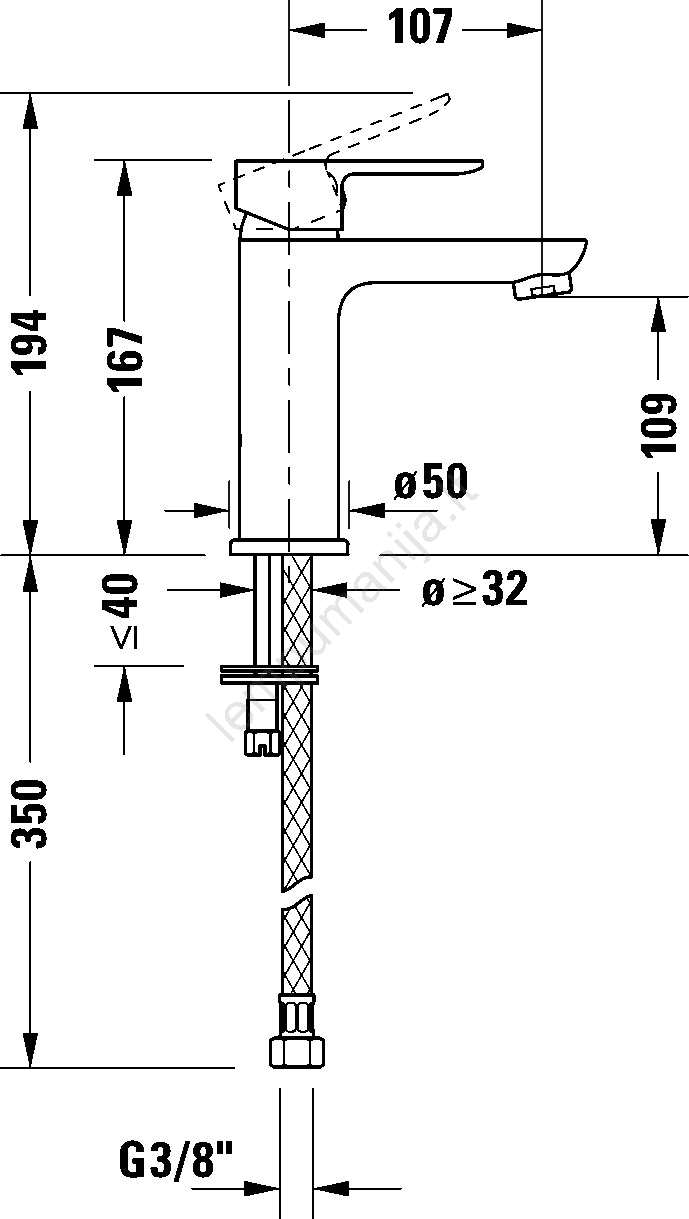 • Maišytuvas tiekiamas be vandens nutekėjimo komplekto; jį reikia užsisakyti atskirai.