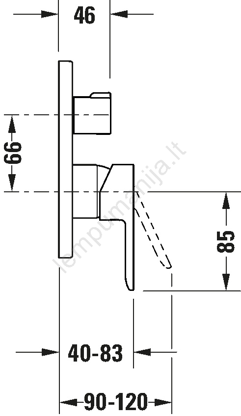 • Įleidžiamasis vonios maišytuvas skirtas montuoti į sieną ir leidžia valdyti tiek vonią, tiek dušą.