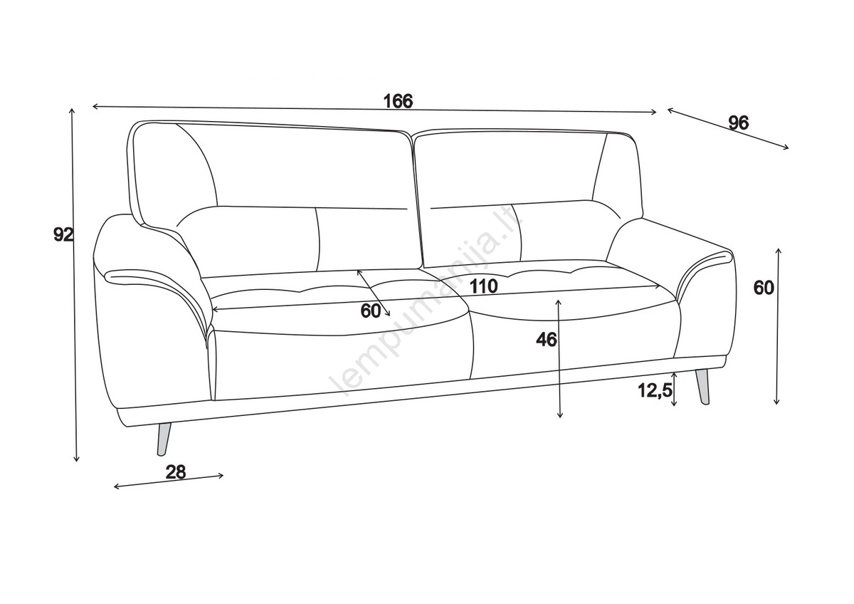 • Dvivietė sofa pasižymi patogia atlošo pagalve, kuri suteikia puikią atramą sėdint.