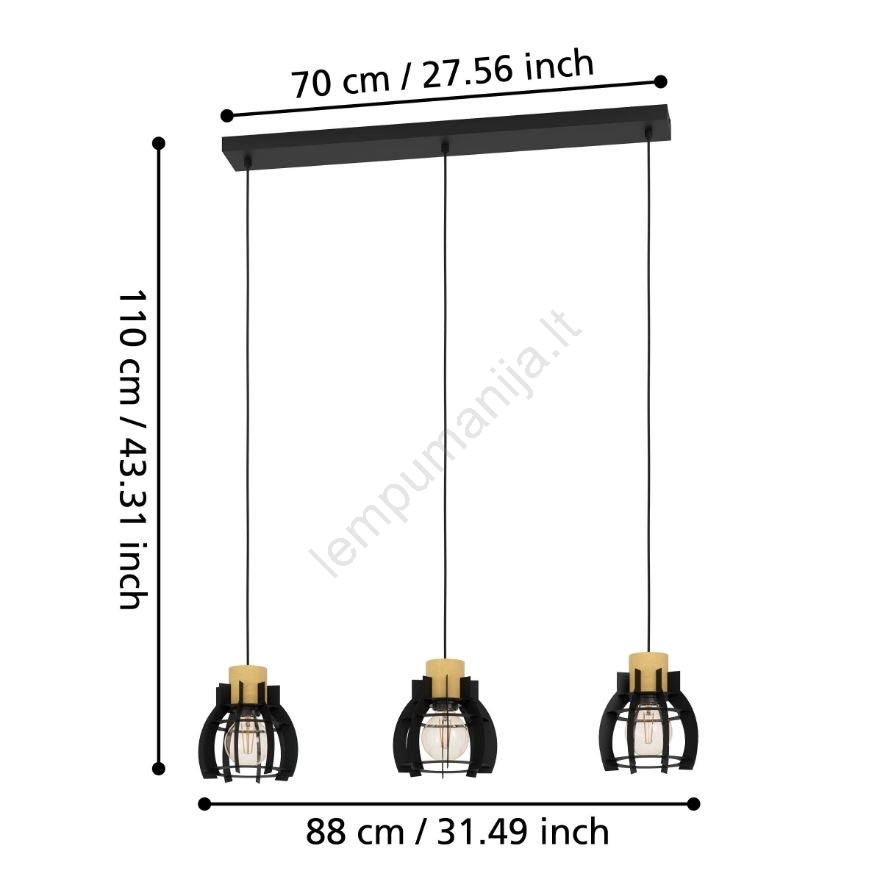 Eglo - Pakabinamas sietynas 3xE27/40W/230V pasižymi gražiu ir funkcionaliu dizainu.  Šviestuvui tinka lemputė su E27 dangteliu. Čia galite įsigyti kitų lempučių palankiomis kainomis. Įdomus jūsų namų priedas.