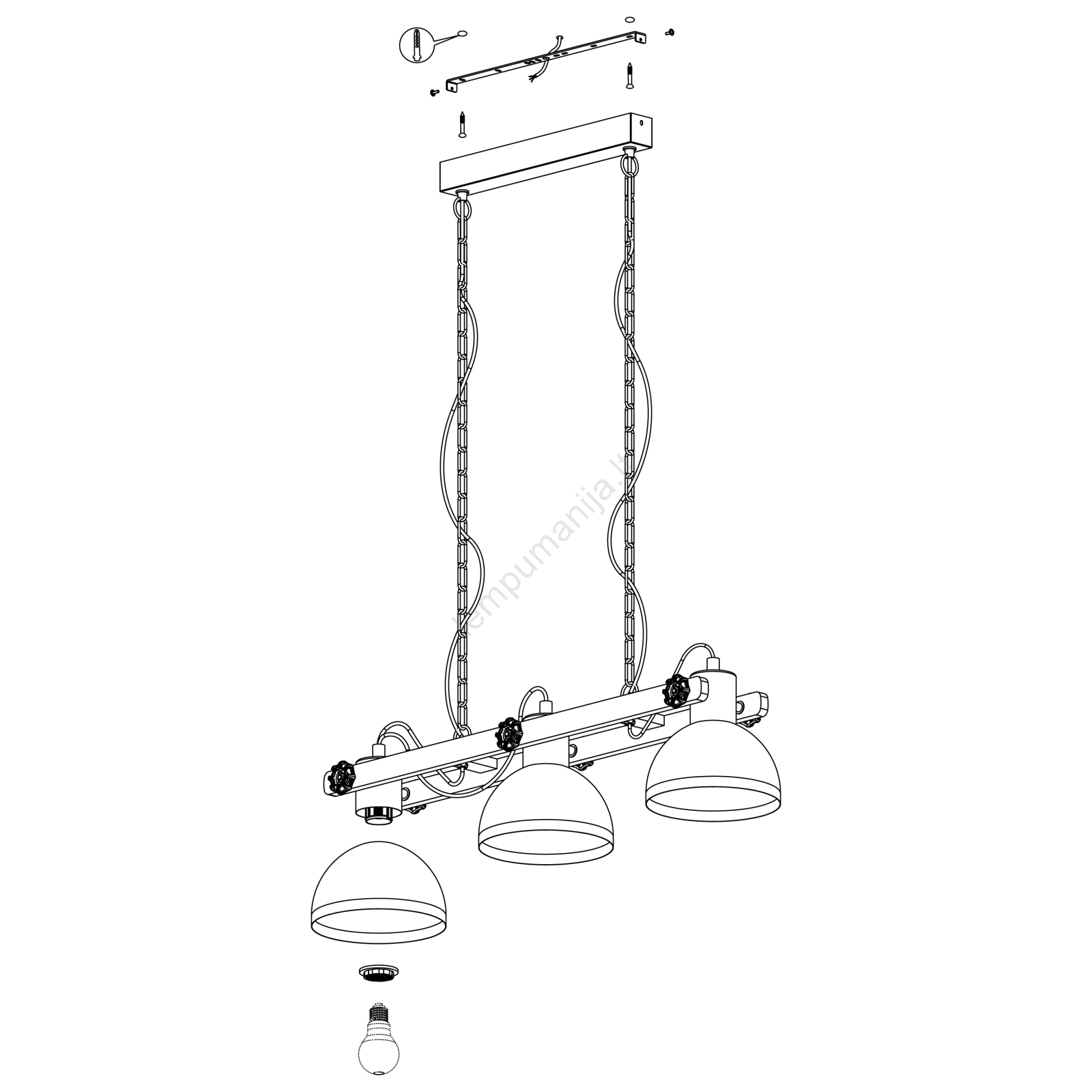 Eglo - Pakabinama liustra ant grandinės 3xE27/28W/230V pasižymi gražiu ir funkcionaliu dizainu.  Šviestuvui tinka lemputė su E27 dangteliu. Čia galite įsigyti kitų lempučių palankiomis kainomis. Įdomus jūsų namų priedas.