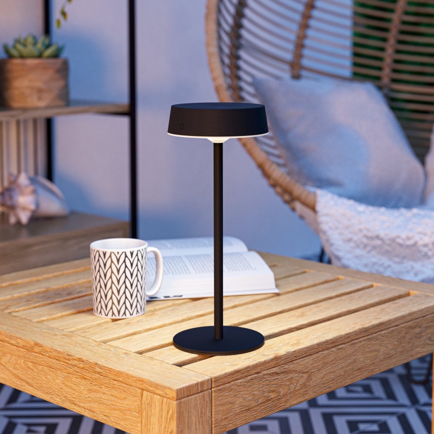 Eglo - reguliuojama LED jutiklinė stalinė lempa su saulės įkrovimu LED/3W/5V 3000-6000K 1800 mAh IP44 juoda
