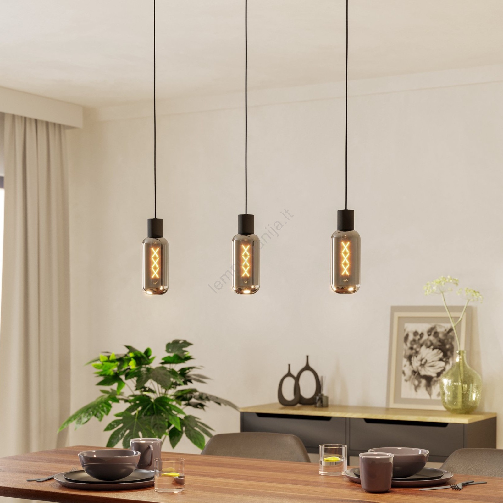 Eglo - Stilingas pakabinamas šviestuvas ant laido 3xE27/4W/230V juodas/dūminis