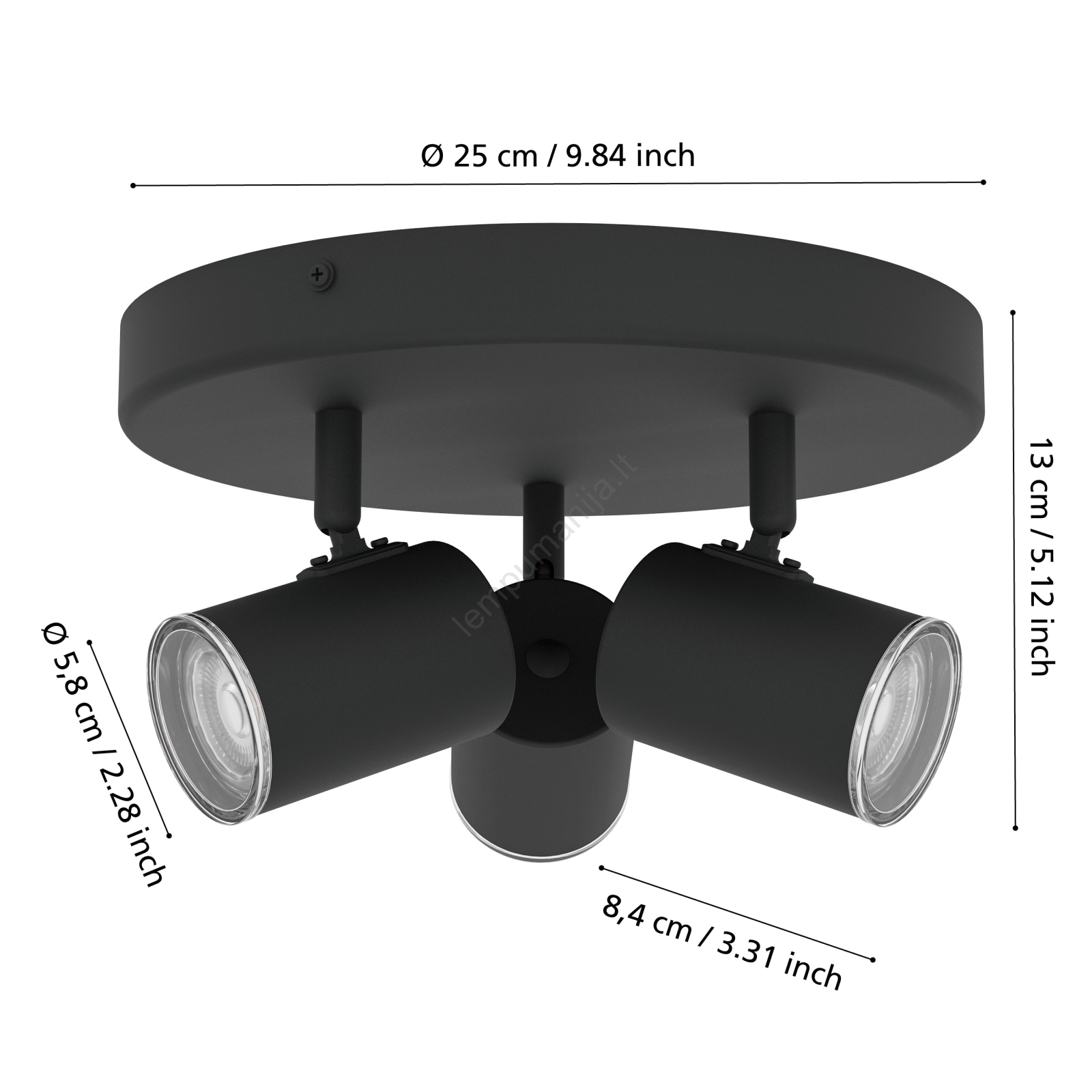 • Eglo - vonios kambario taškinis šviestuvas 3xGU10/5W/230V IP44 juodas