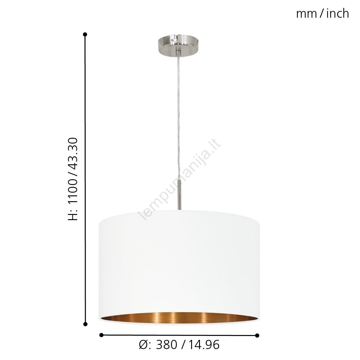 • Dominantė yra balta tekstilinė gaubtas su variniu vidumi.