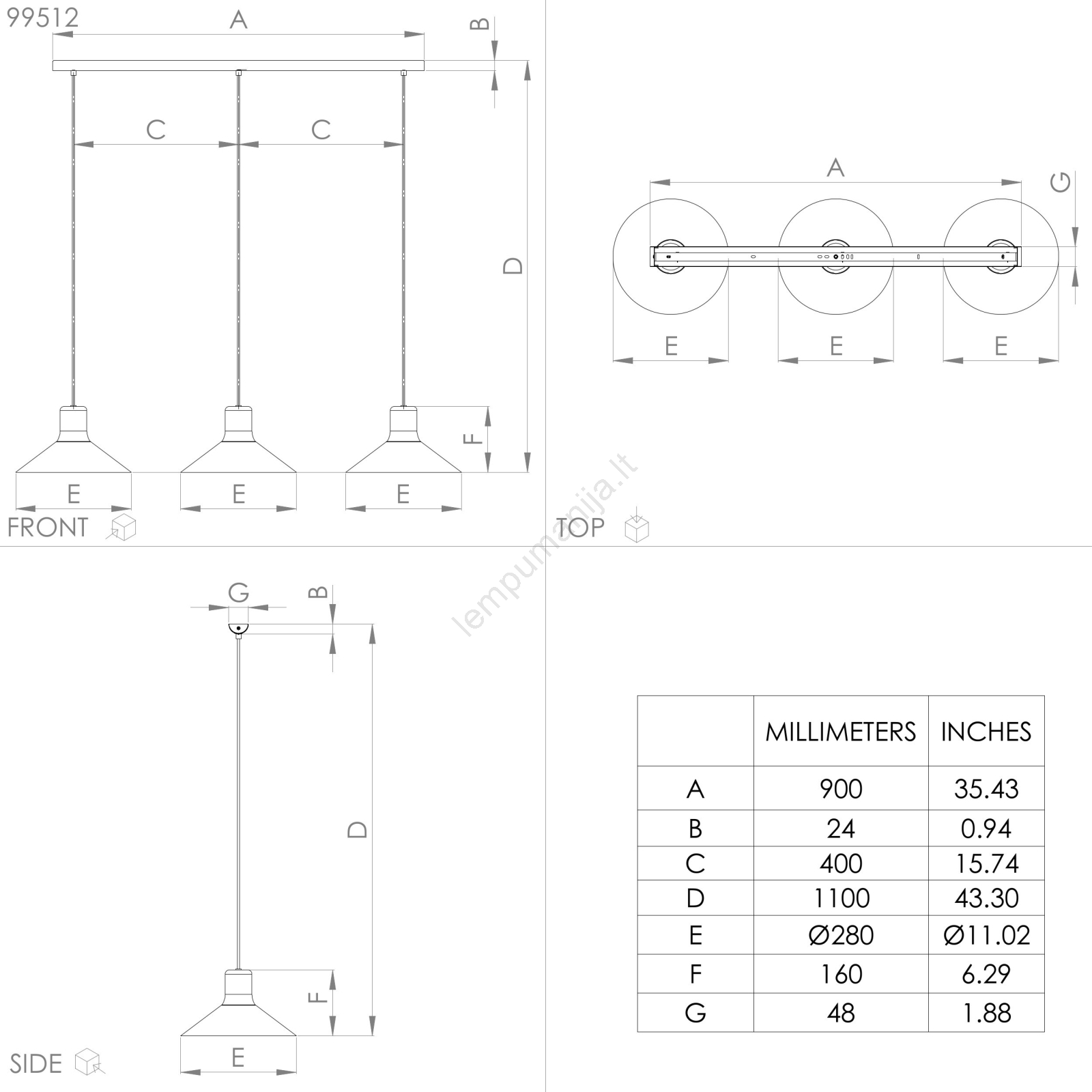 Eglo 99512 - Pakabinamas sietynas ABREOSA 3xE27/28W/230V | Lempumanija