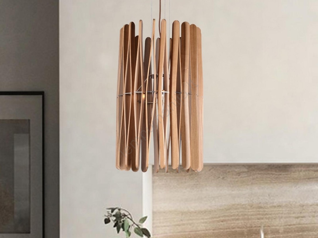Medinis pakabinamas šviestuvas su laidu 1xE27/60W/230V Ø 38 cm masyvi mediena/uosis/kaučiukmedis pasižymi gražiu ir funkcionaliu dizainu.  Šviestuvui tinka lemputė su E27 dangteliu. Čia galite įsigyti kitų lempučių palankiomis kainomis. Įdomus jūsų namų priedas.
