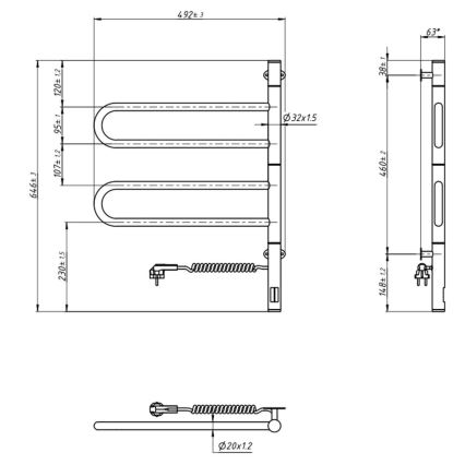 Elektrinis pasukamas rankšluosčių džiovintuvas su termostatu FOUETTE 128W/230V 64,6 cm IP44 juodas
