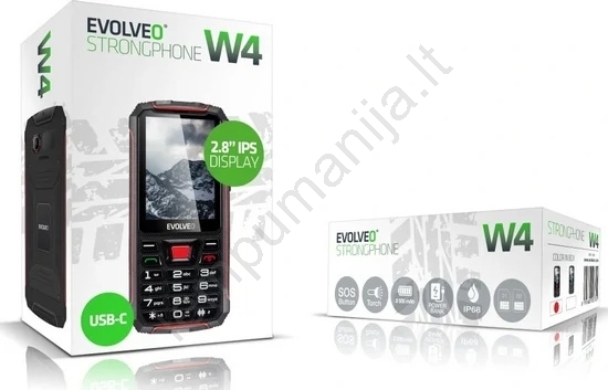 Evolveo - StrongPhone W4, vandeniui atsparus Dual SIM telefonas juodas/raudonas