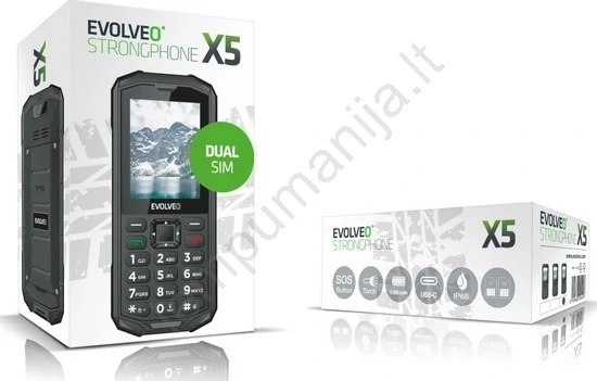 Evolveo - StrongPhone X5, vandeniui atsparus Dual SIM telefonas, juoda/pilka