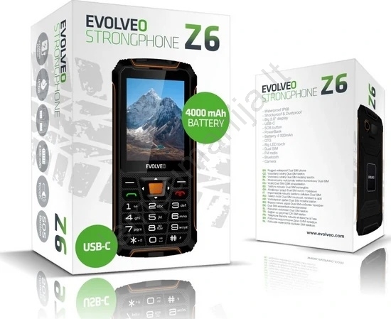 Evolveo - StrongPhone Z6, vandeniui atsparus Dual SIM telefonas, juoda - oranžinė | Lempumanija