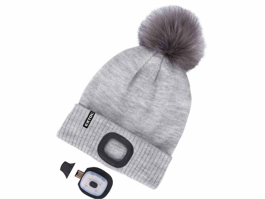Extol - Kepurė su LED žibintu ir USB įkrovimu 300 mAh, pilka su bumbulu, dydis UNI