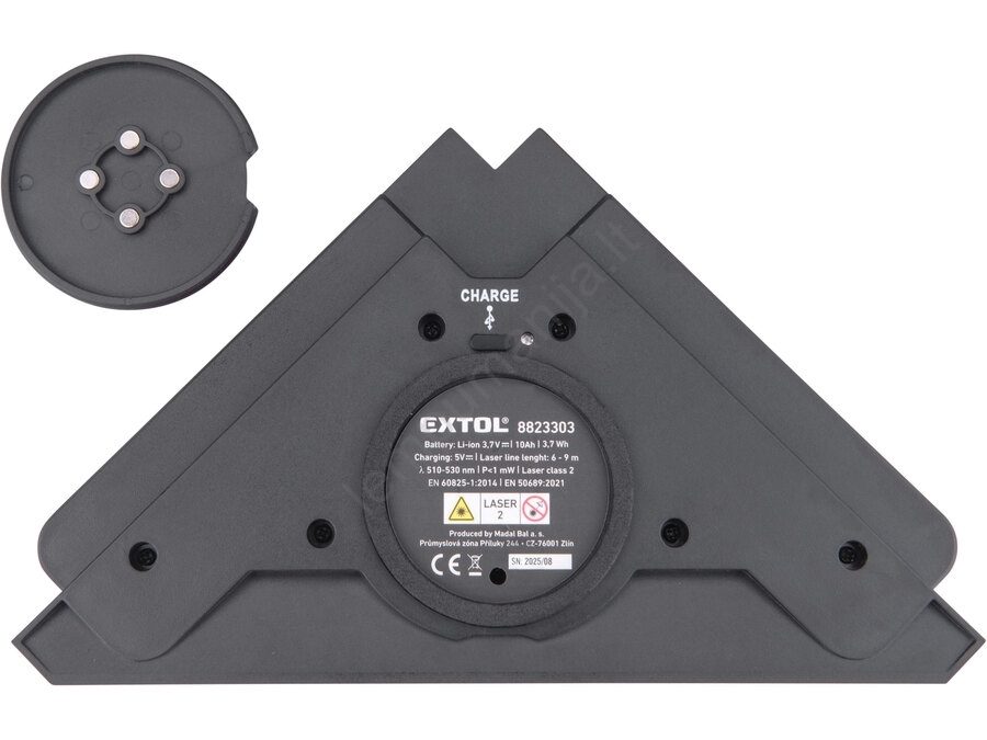 Extol Premium - lazerinis 90° kampamatis su elektriniu siurbimo moduliu 5V/1000 mAh