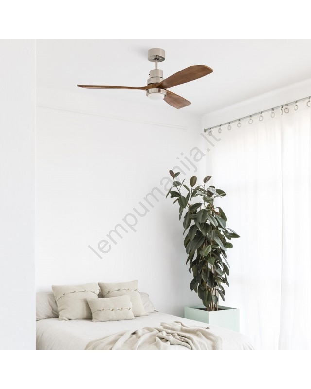 • FARO 33518DC - LED lubų ventiliatorius LANTAU LED/15W/230V skersmuo 132 cm matinis chromas/medžio apdaila + nuotolinis valdymas