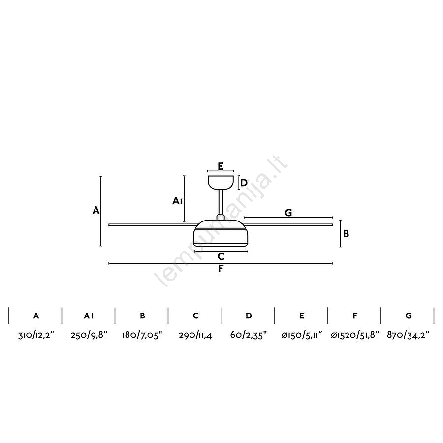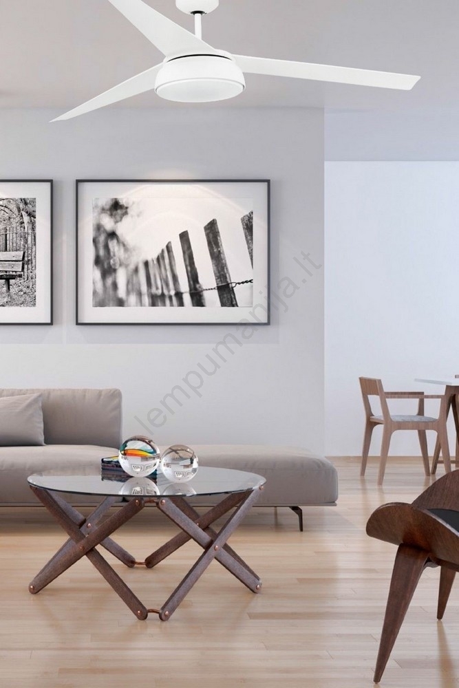 • Modernus lubinis ventiliatorius su LED apšvietimu.