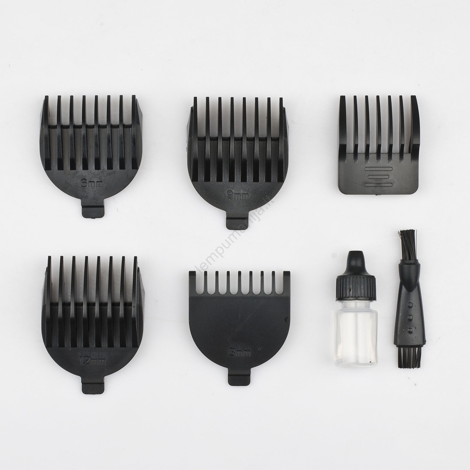• Plaukų kirpimui skirtos 4 šukos: 3, 6, 9 ir 12 mm.