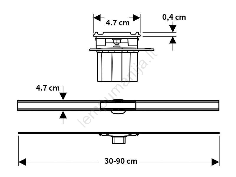 • Dušo nutekėjimo latakas skirtas plonoms plytelėms.
