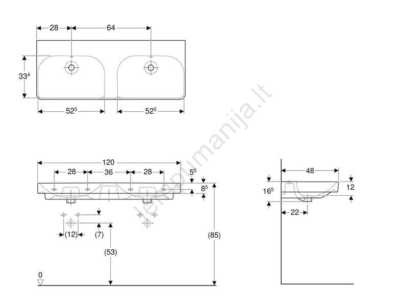 • Dviguba praustuvė skirta montuoti ant sienos.
