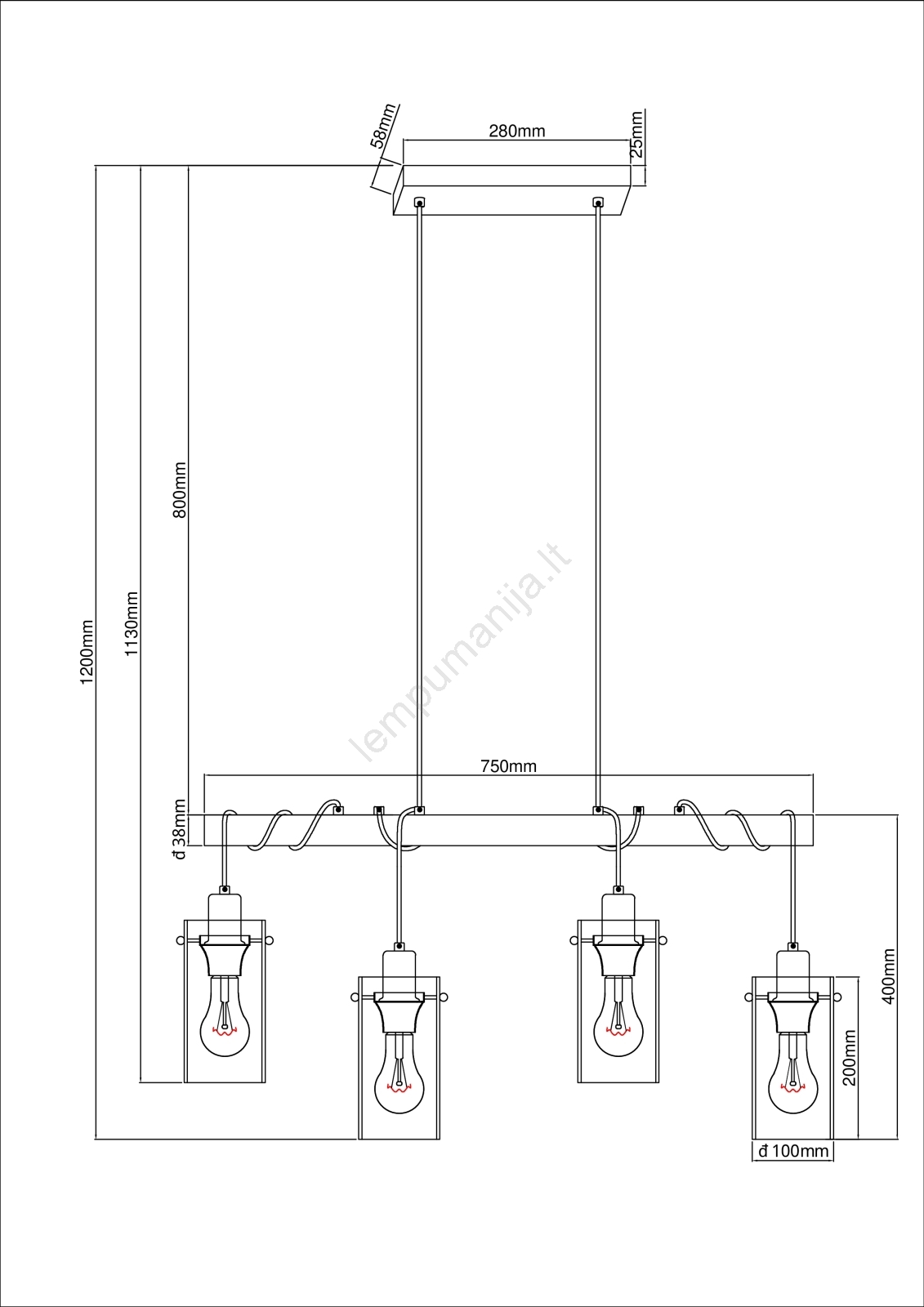 Globo 15564-4H - Pakabinamas sietynas FANNI 4xE27/40W/230V | Lempumanija